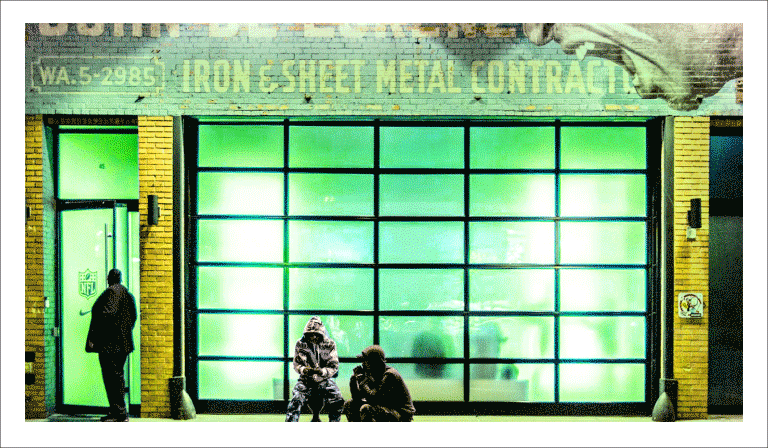 Invited by Burn & Broad, The New York Jets NYC show was a collaboration with Lemon Andersen. He and I connected and created narrative to inform the Jets inspired art. He wrote mauscripts and then we created NYC paper boxes, Jets Huddle Painting, and Jets New York style gang Jacket. The overarching title was Gang Green.
